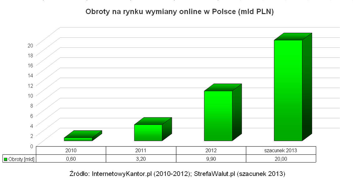 Rynek walut w Polsce jest wart setki miliardów złotych, wymiana walut będzie rosnąć w związku z rosnąca wymianą handlową Polski z zagranicą oraz wzrostem liczby Polaków wyjeżdżających za granicę. Co prawda, będzie maleć liczba osób posiadających kredyty walutowe, gdyż banki niemalże zaprzestały ich udzielania. Jednak osoby, które je już zaciągnęły będą je spłacały jeszcze przez długi czas. Większość udzielonych do tej pory kredytów była na okres ponad 25 lat. Co więcej, w najbliższych latach nadal bardzo intensywnie będzie wrastać liczba osób zainteresowanych wymianą waluty w Internecie. Jest to bowiem tańsza forma wymiany, niż w tradycyjnym kantorze czy banku.