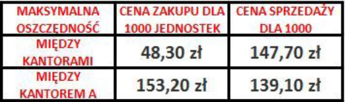 Jak więc widać statystyczny kantor jest o co najmniej 5 punktów procentowych bardziej opłacalny niż statystyczny bank. Przy wymianie 1000 jednostek przekłada się to na prawie 50 jednostek waluty.