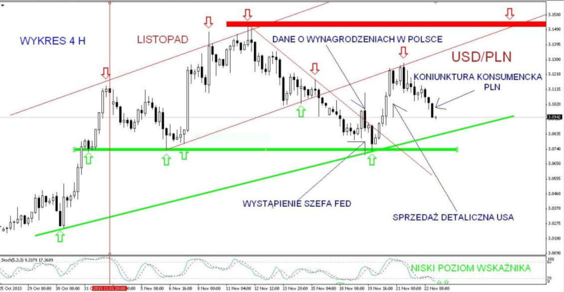 ANALIZA TECHNICZNA USD/PLN, 22.11.2013, 4H