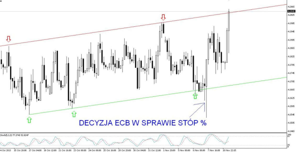 GBP: Bank Anglii pozostawił stopy na niezmienionym rekordowo niskim poziomie 0,5%. Zaskoczeniem dopiero była decyzja w sprawie stóp procentowych w strefie euro. W listopadzie ECB postanowił obniżyć stopy o 25 pkt. bazowych do 0,25%. Cięcie kosztu pieniądza jest pierwszą taką decyzją od maja br.